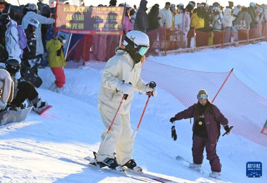 2月25日,滑雪爱好者在新疆阿勒泰将军山国际滑雪度假区滑雪。新华社记者 王菲 摄