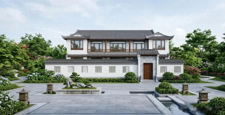 今天,我们要分享一套专为农村现代生活定制的两层新中式自建别墅方案。这套不仅拥有白墙黛瓦的文雅风骨,更通过科学的双庭院布局和挑空室内设计,彻底打破了传统民宅采光差、布局乱的痛点。它既能让家里的老人住得舒心、不离乡土,又能让习惯了城市生活的年轻人回家时,感受到五星级酒店般的便利与精致。