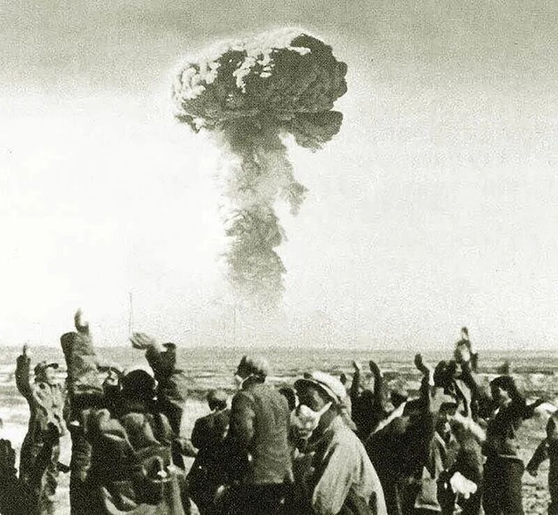 中国第一颗原子弹爆炸成功,现场人群欢呼图源:“党史博采”微信公众号