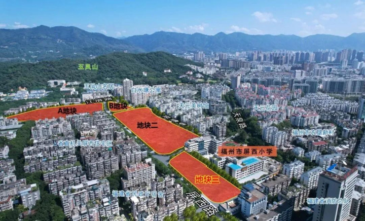 资料显示,2023年11月,福州举办四城区第六场、第七场土拍,福建省榕圣建设发展有限公司分别以11.5亿、1.44亿竞得宗地2023-48号(上图AB地块)以及宗地2023-64号地块(上图地块三),地块面积分别56.12亩及9.07亩。
