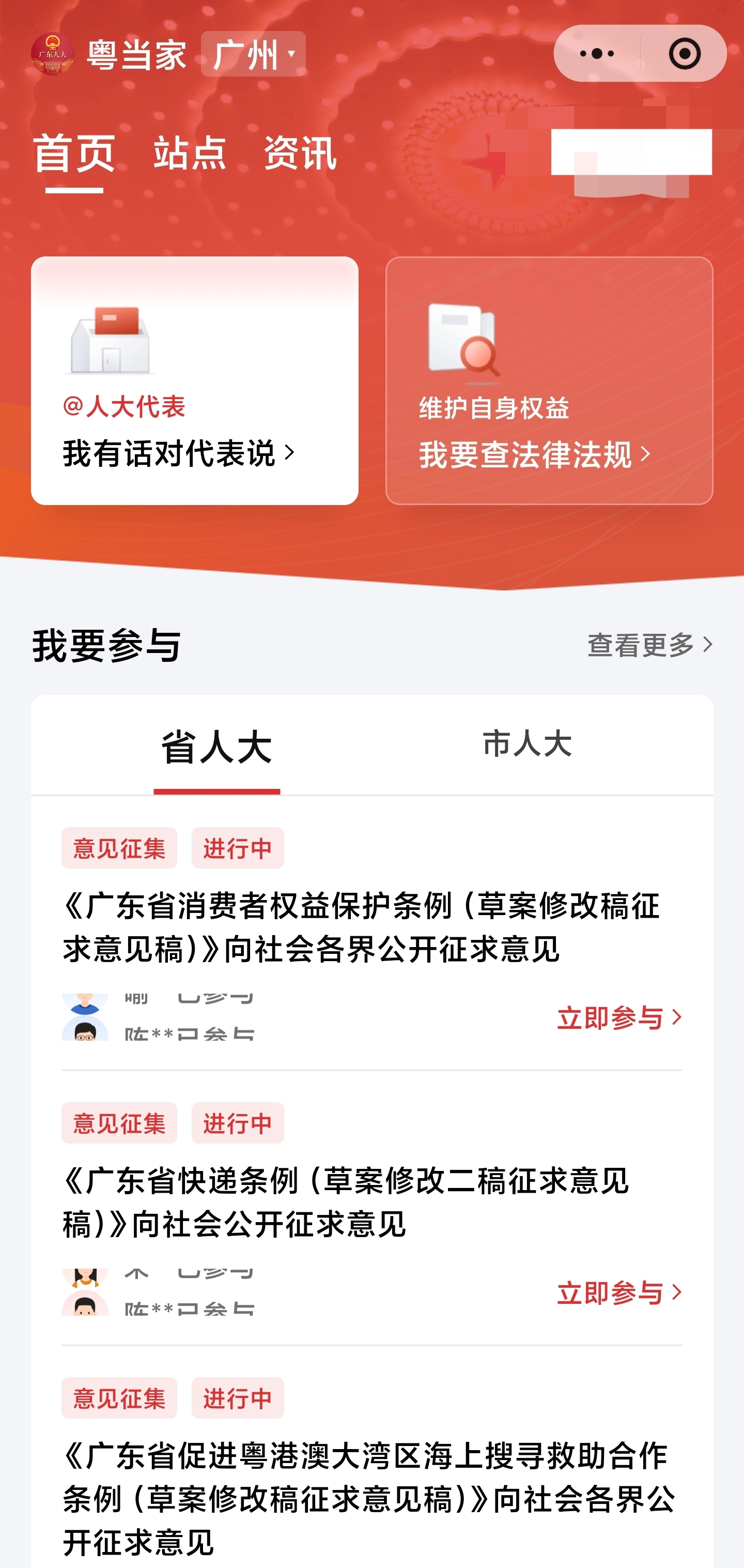 面向群众,立法意见征集渠道同样畅通。“粤当家”小程序首页在最显眼的位置设置意见征集板块。记者登录小程序,点击省、市两级多个条例(草案修改稿、征求意见稿),目录、详细内容清晰可查。用户只需点击界面上方区域,即可输入意见。来自一线的声音,让立法更贴合民生需求。